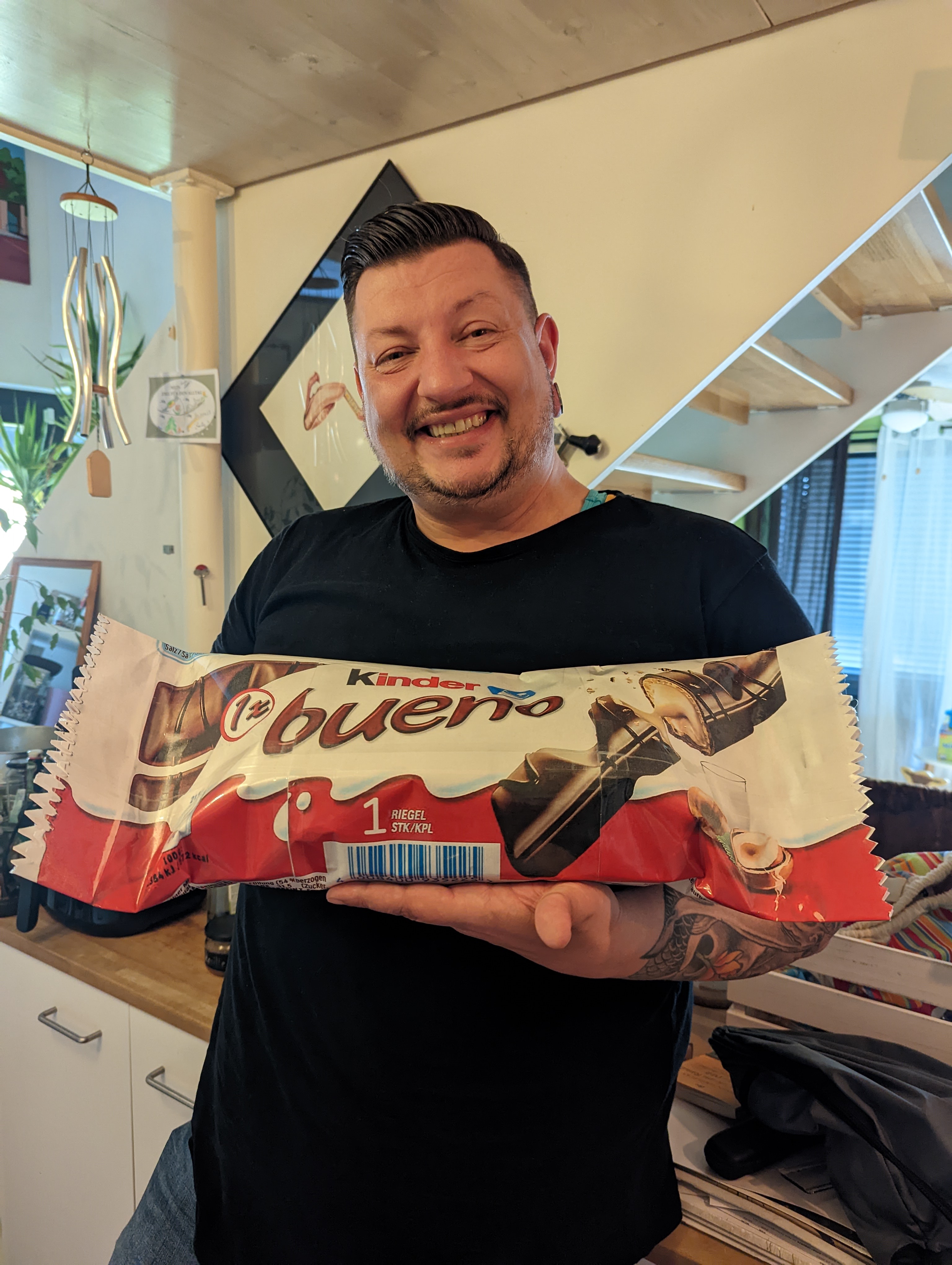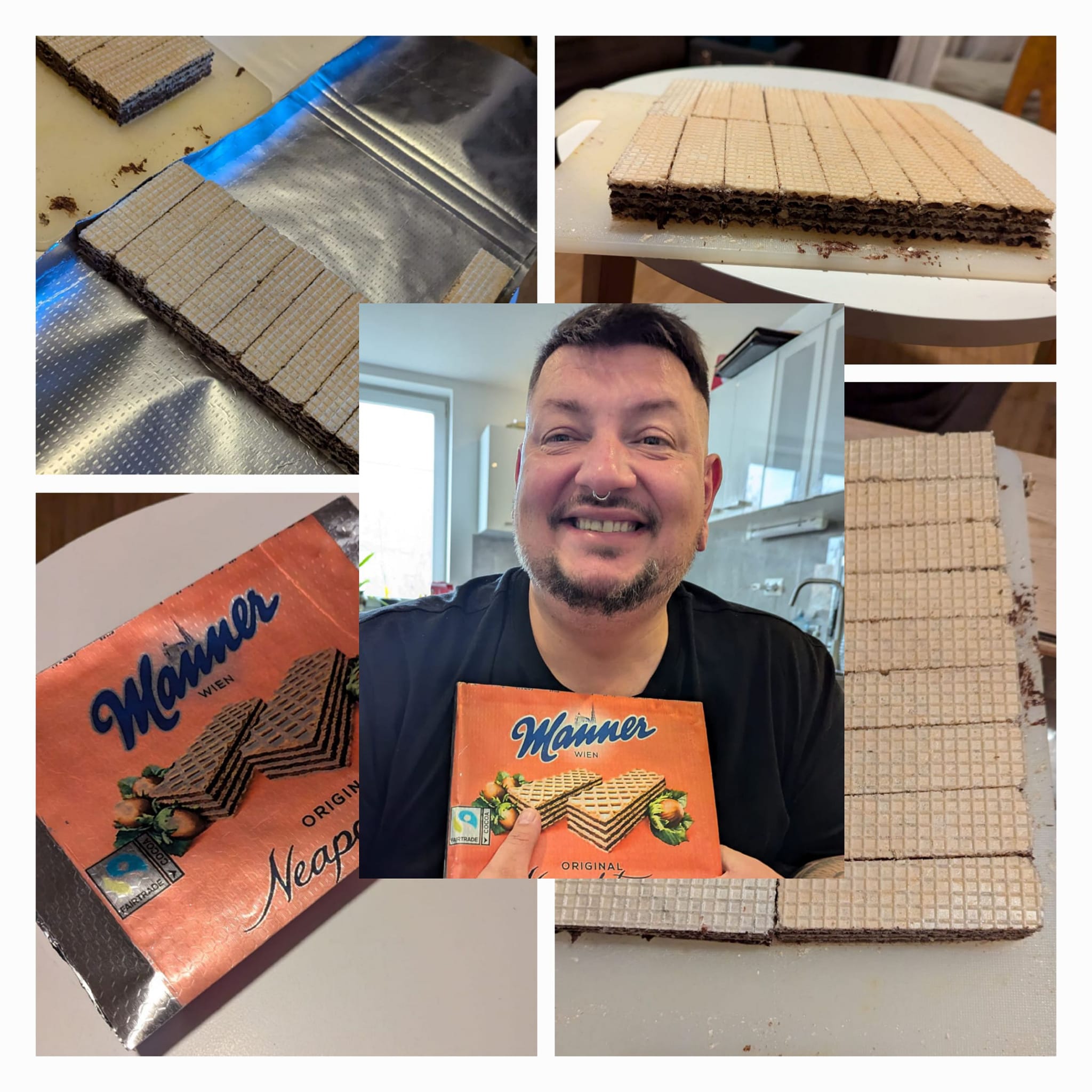 "Ich wünsche mir ein riesiges Bounty!" So hat es vor Jahren mit einem Geburstagswunsch meiner Schwägerin begonnen. Riesen-Bounty. Aja. OK, hab ich versucht und ist gelungen. Naja und was soll ich sagen - Sachen die lustig sind, mache ich dann halt öfter. Und so sind ein Raffaello, ein Maxi King, ein Country, ein Pingui und noch ein paar andere Giant-Cakes gefolgt. Alle in einem Maßstab von 1:30 (oder so), möglichst nah am Original. Sowohl was den Geschmack, als auch die Verpackung angeht. Nicht ganz einfach, nicht ganz kalorienarm, aber witzig. Und immer ein Hingucker. Auf jeder Party. Mannerschnitten sind bestellt für 2025, mussten dann aber schon ein wenig früher her. Zum Abschied in die Rente, bestellt von einem riesen Unternehmen.Danke an dieser Stelle für euer Vertrauen! Dass das Copyright für die Marke beim Hersteller bleibt, ist ja völlig klar, das will ich eh nicht haben. Aber froh bin ich, dass die kleinen Riegeln gibt - denn so kann ich große nachmachen! Sehr funny!